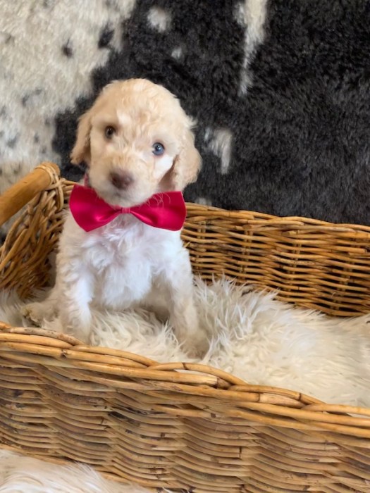 Watching the puppies grow and trying to determined if they would be flat coat golden doodles (retriever style) or have facial furnishings took patience. Early on I knew what six of the puppies coat type would be but, the other five I had to wait until I could or couldn’t see facial furnishings growing. I am impatient so waiting is not easy but, finally I was able to determine the coat type of four of the last five puppies in question.