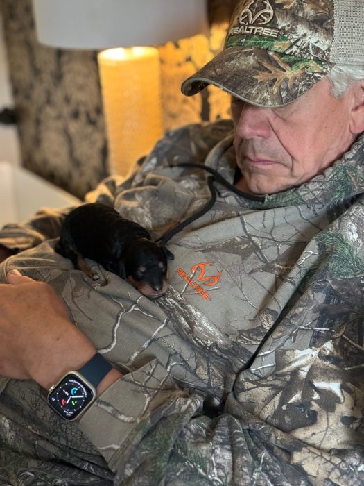 We handle our puppies from birth for daily cuddles in addition to ENS. This is to make them comfortable with the human touch early in their life.