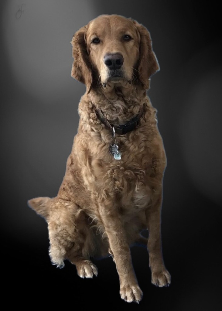 Brinkley is our handsome Red Flat Coat Standard Goldendoodle from Ruska and Tulo’s 2019 litter. He is a large boy, standing 28 inches at the shoulder and weighing 95 pounds. As can happen in an F2 breeding, Brinkley has inherited a generous amount of Retriever Genes. Soon after he was born, I was struck by how calm and gentle he was, and Brinkley continued to impress me as he grew. My daughter fell in love with him instantly and was so grateful to be able to adopt him.