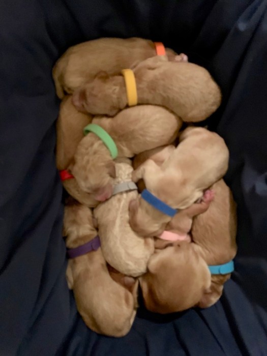 Ellie’s puppies continue to grow and progress. Eleven puppies is a large litter to keep fed and clean. Ellie is an amazing mama that loves to care for her babies!