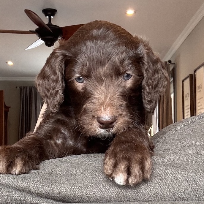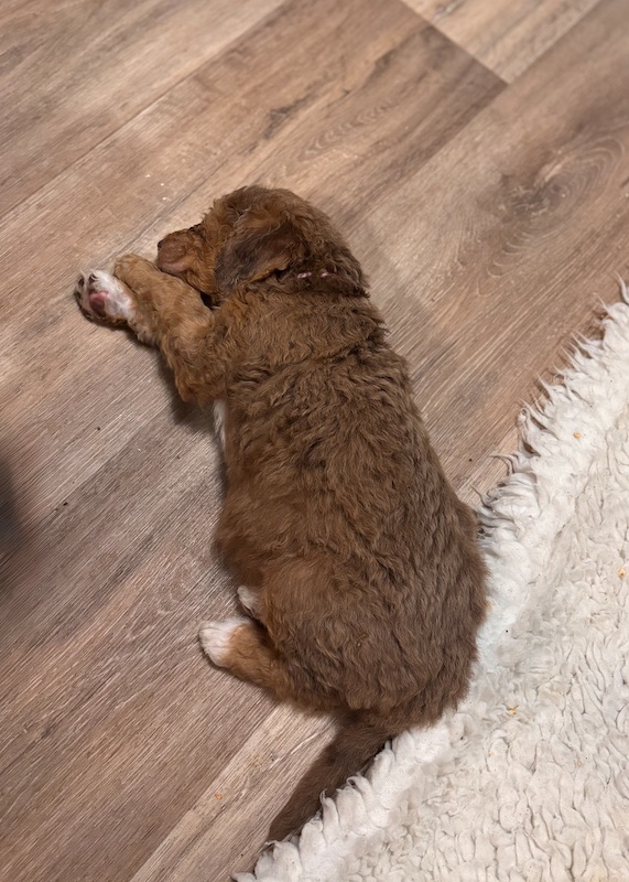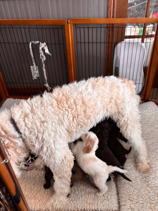 • Most of the litter, as all Goldendoodles, will experience clearing (lightning) as they age. We can see this beginning when the puppies are around five weeks old.