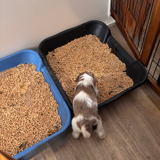 It’s amazing to watch puppies wake up or stop playing and go over to use their potty box.