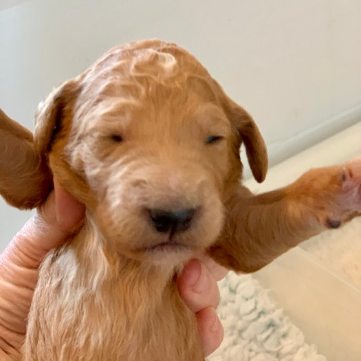 Nova’s puppies are now two weeks old and have entered the Transitional Period from day 14 to 21. Each litter is different and enters the next period, the Critical Socialization Period, when the puppies “first startle” at a sound.