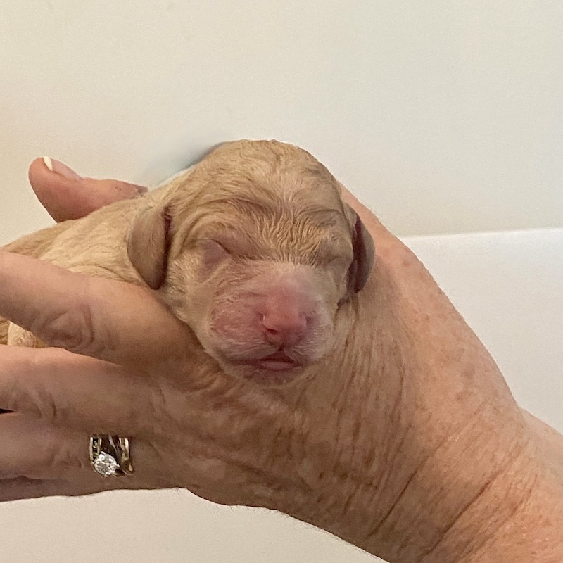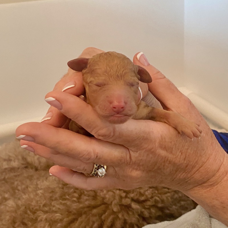 The puppies are in the Neonatal Period which is from day 0 to day 14. During this period, puppies spend their time eating and sleeping. On Monday, day 3, we began ENS exercises (Early Neurological Stimulation) which will continue through until day 16. We preform ENS daily during our weigh-in time. Research shows these tiny struggles and stresses in small doses are good for puppies. Research shows that benefits from ENS include greater tolerance to stress, greater resistance to disease, faster adrenal system, stronger heart rate and stronger heartbeat. This is a gift that a breeder can only give their puppies during the 3 to 16-day window.