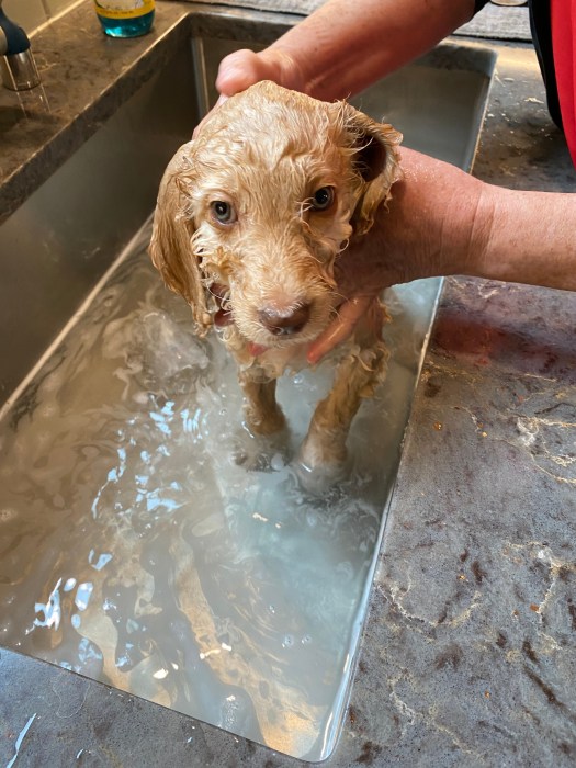 Next the puppies are bathed. I was very surprised at how well behaved the puppies were. We only had a couple puppies try to make their escape.